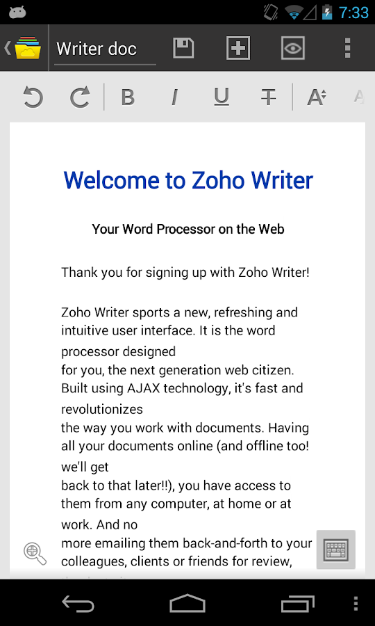 برنامج zoho writer لانشاء الملفات النصيه بطريق سهله وممتعه لاجهزة الاندرويد